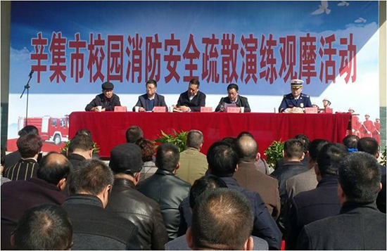 | “隱患顯于明火,防范勝于救災(zāi)”為提高師生的消防安全意識(shí),培養(yǎng)全校工作人員在遇到火災(zāi)等突發(fā)事件的應(yīng)變能力,掌握安全逃生與疏散技巧。結(jié)合我市實(shí)際情況,2019年3月14日,特舉辦“消防安全進(jìn)校園”的一次消防演習(xí)活動(dòng)。此活動(dòng)由辛集市教育局主辦,新壘頭鎮(zhèn)中學(xué)及河北國(guó)超消防設(shè)備科技有限公司承辦,希望普及消防知識(shí),防患于未來(lái)。 參加本次活動(dòng)的有辛集市教育局黃興君局長(zhǎng)、趙樹(shù)山副局長(zhǎng),應(yīng)急事務(wù)管理局辛彥卜局長(zhǎng),辛集市消防大隊(duì)盧保龍大隊(duì)長(zhǎng),消防專家沈文教授。還有各學(xué)區(qū)總校長(zhǎng)、直屬學(xué)校和民辦學(xué)校校長(zhǎng);各學(xué)區(qū)、直屬學(xué)校、民辦學(xué)校主管安全副校長(zhǎng);各初中校長(zhǎng)、主管安全校長(zhǎng);全市完小校長(zhǎng)、主管安全副校長(zhǎng)共計(jì)230余人及新壘頭鎮(zhèn)中學(xué)的1100多名師生。