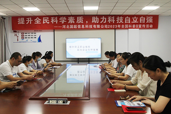 根據國家、省關于舉辦2023年全國科普日活動的通知要求,結合辛集市實際,制定了《提升全民科學素質,助力科技自立自強全國科普日活動實施方案》。在市科協(xié)的指導支持下,2023年9月18日下午,河北國超信息科技有限公司開展了“提升職工職業(yè)技能,助力企業(yè)創(chuàng)新發(fā)展”為主題內容的全國科普活動。