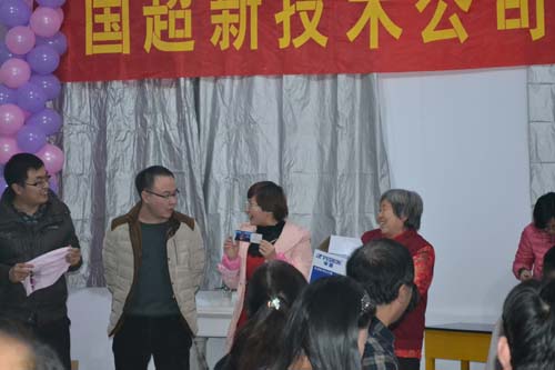 | 2013年12月27日晚,我公司一樓大廳燈光璀璨,笑語滿堂,2014年元旦聯(lián)歡晚會在這里隆重舉行。我公司董事長兼董事長劉占查攜全體員工以及有關(guān)公司領(lǐng)導(dǎo)歡聚一堂,喜迎元旦迎新年。 晚會在熱烈、激情的歌曲《國超之歌》中拉開帷幕。晚會有猜謎游戲、中外文歌曲、音樂劇、抽獎等節(jié)目,展現(xiàn)了國超人的青春活力和對公司的熱愛之情。晚會時代氣息鮮明,企業(yè)文化特色濃郁,多角度,多視點的營造出昂揚振奮、歡樂祥和的節(jié)日氣氛。本次晚會的節(jié)目都是公司員工自編、自導(dǎo)、自演的,迎得了大家的一致好評,員工們的精彩表演贏得滿場陣陣熱烈掌聲;厥走^去,我們銳意進取,不斷求索;展望未來,我們勇往直前,再創(chuàng)輝煌。在新的一年里,國超公司必將繼往開來、與時俱進,創(chuàng)造更加燦爛輝煌的明天。