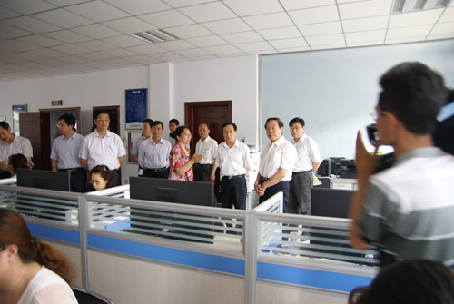 2015年5月26日。河北省委常委、紀委書記陳超英及省廳領導由辛集市委書記聶英武、辛集市委常委、秘書長姜保康、辛集市委常委、紀委書記崔新國陪同,來我公司調(diào)研。省委領導參觀了公司一樓培訓學校、三樓工作廳和公司業(yè)績展示廳,聽取了公司工作匯報,省領導肯定了公司成立以來在汽車領域軟件信息服務外包的工作業(yè)績,并對公司今后的發(fā)展方向做出了明確指示。要求公司在做好專項業(yè)務的同時要進一步做好新產(chǎn)品新技術(shù)的研發(fā)工作,加大研發(fā)力度,爭取做出更大的成績。