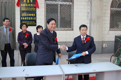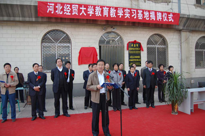 | 為了促進高新技術企業(yè)發(fā)展,培養(yǎng)科技人才,河北經貿大學把我公司確定為河北經貿大學外國語學院教育教學實習基地。 2008年11月4日,在公司門前隆重舉行河北經貿大學外國語學院教育教學實習基地揭牌儀式,辛集市政協副主席陳蘭章主持會議,出席這次儀式的領導和來賓有: