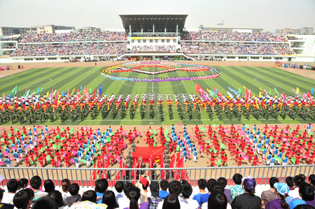 22日上午9時(shí)河北科技大學(xué)第一屆學(xué)生節(jié)開幕式在新校區(qū)主體育場(chǎng)隆重舉行,河北省委副書記付志方出席開幕式并宣布學(xué)生節(jié)開幕,省人大副主任馬蘭翠,政協(xié)副主席王剛及國家教育部,中國城市規(guī)則設(shè)計(jì)研究院,河北省國資委教育廳、文化廳、省考試院的主要領(lǐng)導(dǎo)在主席臺(tái)前臺(tái)就座,開幕式由河北科技大學(xué)黨委書記衛(wèi)舸主持。校長李強(qiáng)代表高校黨政領(lǐng)導(dǎo)班子致歡迎詞。